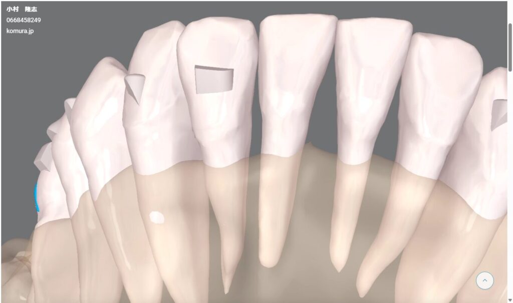 できるだけ歯の幅を削らずに正中(真ん中)を合わせるには、下の動画のように、各歯の幅をデジタルで正確に測定し、必要最小限の歯を慎重に選んで(IPRの適応を検討し)、全体の配置を段階的に導く設計が求められます。 その際は、デジタル設計に適したイ... -