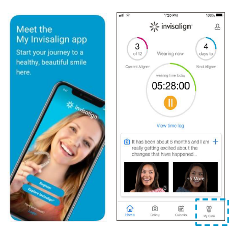 ★マイインビザラインアプリの「マイケア」写真マーク写真マークが出たら、アプリの指示に沿って撮影